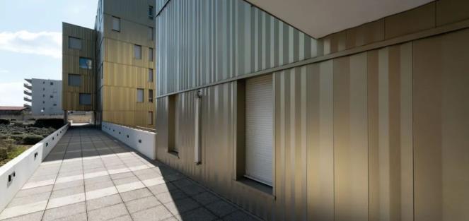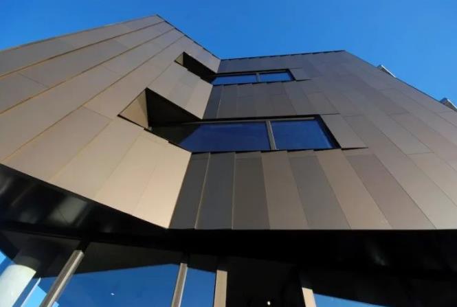 實(shí)心鋁外墻產(chǎn)品常見(jiàn)于3mm厚的面板,并在表面覆以裝飾性涂層。實(shí)心鋁板常被切割成特定的尺寸,且對(duì)邊緣處通過(guò)軋折處理,使其便于連接固定。